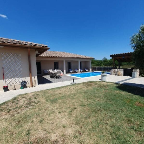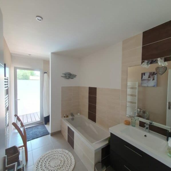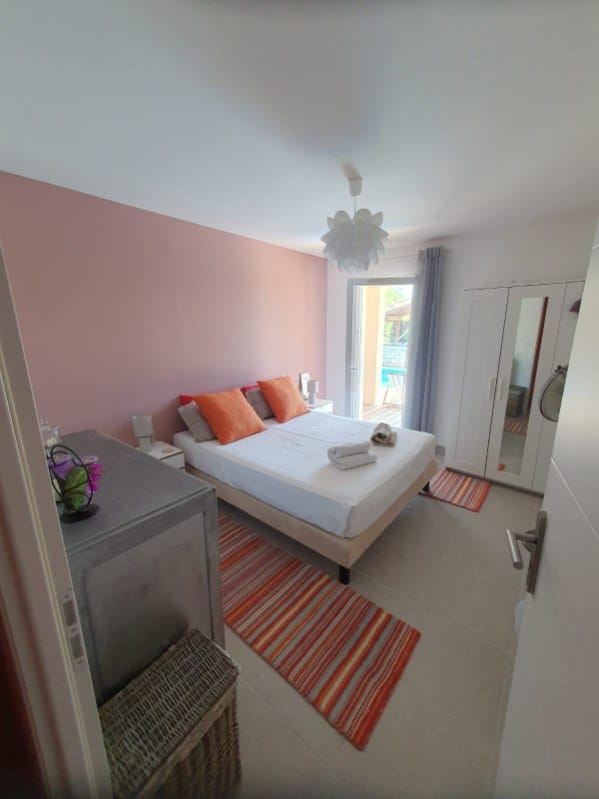 Sur un terrain de 750m², une villa récente de 120m² se composant d’un beau et grand séjour lumineux sur cuisine ouverte de 60m², de trois chambres (deux lits doubles et deux lits simples) dont une parentale avec douche donnant directement sur la piscine, ainsi qu’une grande salle de bain avec douche et baignoire et deux WC séparé, une buanderie avec un lave-linge. La villa M possède également un bel extérieur avec terrasse ombragée, parterre engazonné, coin cuisine d’été et piscine.
